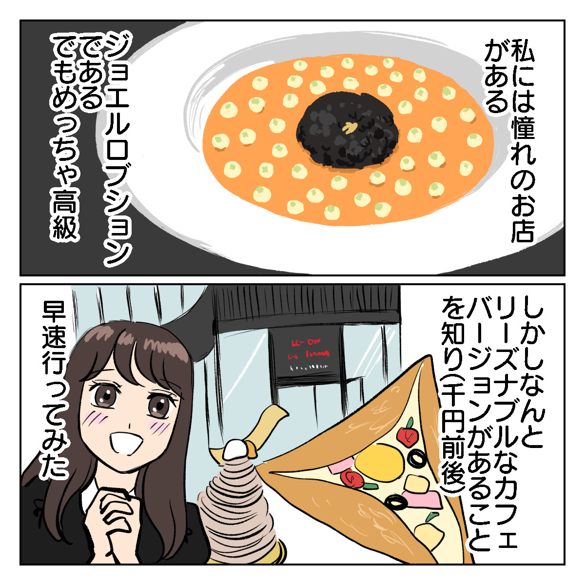 世界一美味しいケーキ食べた話① 2021年10月12日 続く!!! 「日常」カテゴリの最新記事 タグ :#感想#日常#漫画ブログ#お菓子#スイーツ < 前の記事次の記事 > コメント コメント一覧 (5) 1. 褒めおじ 2021年10月12日 21:05 はわわわわ!美味しそう!おじさんもたべたい!ぼくが食べたら、王子さま・・・はムリでも アラジンのラジャーくらいには、かっこよく、なれるカナ?! 0 shibuyatsukimi がしました 3. シブヤツキミ 2021年10月12日 21:12 >>1 ラジャー、カッコいいネ❗️おじさんも好きだよ❗️ 0 shibuyatsukimi がしました 2. みさお 2021年10月12日 21:12 かわいい!盛り付けもオシャレ!芸術作品じゃん!ツキミさん、プリンセス描くの、上手すぎません? (パパったら!あたしはラジャーが一番好きなのに!ぷんぷん!) 0 shibuyatsukimi がしました 4. たけやん 2021年10月12日 23:02 美味しそうです! いいなぁ^_^そしてプリンセスがとても可愛いです❤️ 0 shibuyatsukimi がしました 5. ここ 2022年02月13日 22:14 いつみてもおもしろいです🤣 いつもありがとうございます♪ 0 shibuyatsukimi がしました コメントフォーム 名前 コメント 記事の評価 リセット リセット 顔 星 情報を記憶 コメントを投稿する