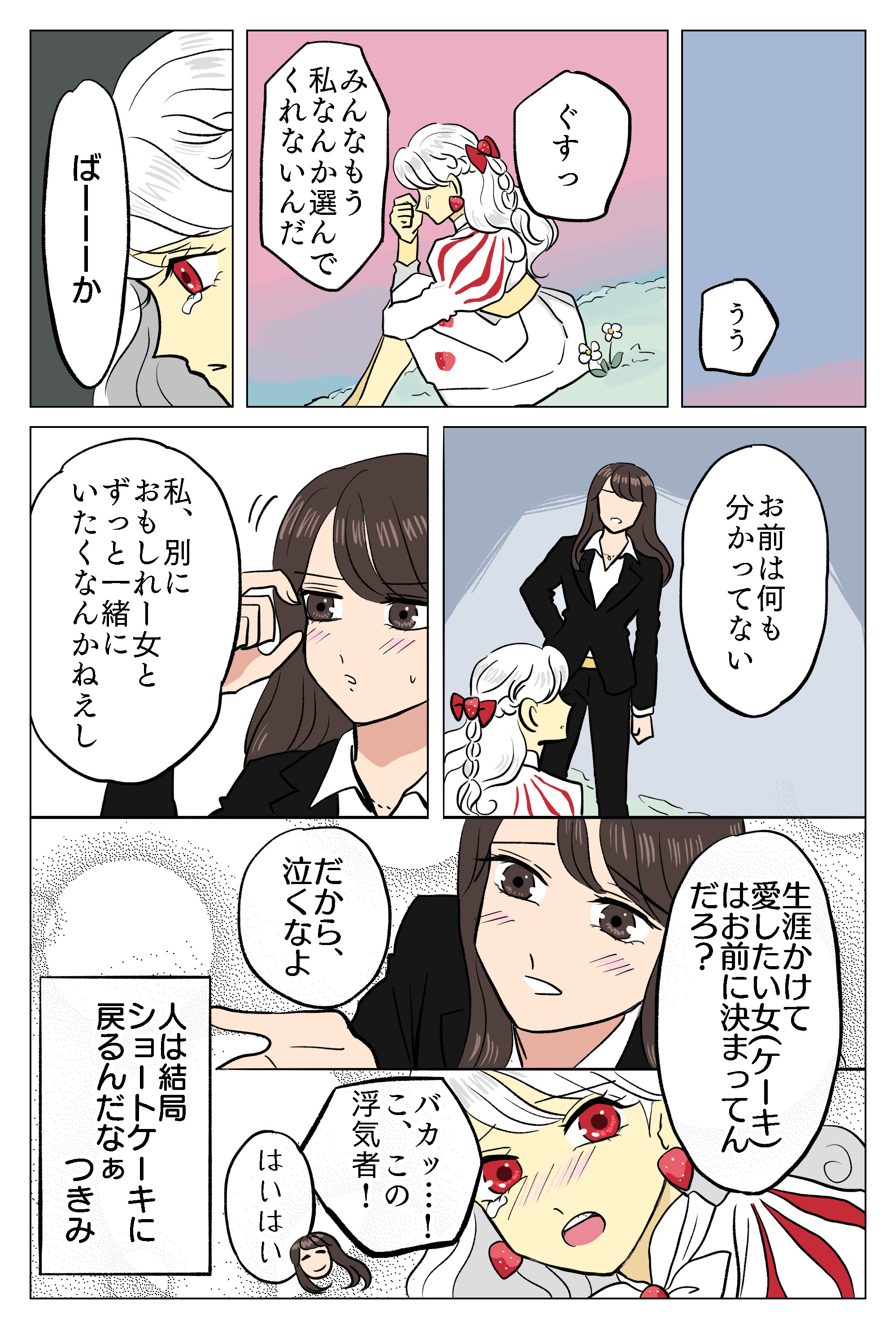 ショートケーキはつまらない? 2021年12月24日 やっぱりショートケーキしか勝たん。本日クリスマスケーキのお話が配信されたよ!続きはこちらから💁♀️ そしていつもコメントありがとうございます📝いつも面白いです☺️メリークリスマス~🎄 「お菓子シリーズ」カテゴリの最新記事 タグ :#漫画ブログ#ショートケーキ#スイーツ#お菓子#クリスマス < 前の記事次の記事 > コメント コメント一覧 (5) 1. 褒めおじ 2021年12月24日 21:17 はわわ・・・❤️ 我々はツキミちゃんの漫画を彩る、道端の草だから・・・そんな感謝とか・・・嬉しい(*´∀`*)ポッ ツキミちゃんが、キャラクターの衣装とか、ワンカットごとの表情も丁寧にこだわって描いてるの、知ってるよ!これからも、応援してるヨ! 0 shibuyatsukimi がしました 2. シブヤツキミ 2021年12月24日 21:35 >>1 おぢさん…🥺🥺🥺 優しいコメントありがとう❗️🎅📝 0 shibuyatsukimi がしました 3. もずく 2021年12月24日 22:14 相変わらず登場人物のビジュアルが良すぎる😿♡ 特にツキミさんイケ美女すぎました😽 ショートケーキちゃん可愛い♡ 0 shibuyatsukimi がしました 4. 上杉裕世 2022年04月20日 16:59 広田良吾 0 shibuyatsukimi がしました 5. ケーキ 2022年04月20日 17:00 ケーキ 0 shibuyatsukimi がしました コメントフォーム 名前 コメント 記事の評価 リセット リセット 顔 星 情報を記憶 コメントを投稿する